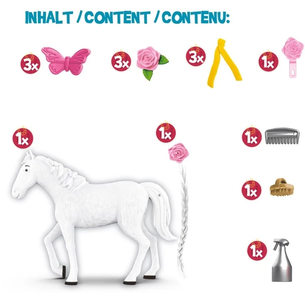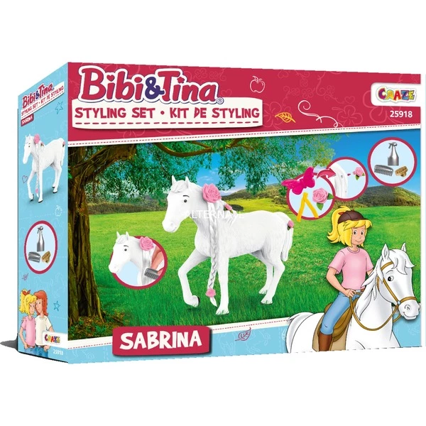 Sabrina est une belle jument grise. Bibi aime les longues randonnées ou les longueurs du parcours. Sabrina est un cheval élégant et est toujours parfaitement stylisé comme pour une compétition de dressage ou de saut d’obstacles. Le set de jeu Bibi&Tina Styling Sabrina de CRAZE comprend le magnifique cheval Sabrina ainsi qu’un postiche artificiel et des ustensiles de coiffure pour la crinière. Cela fait des soins pour animaux de compagnie un grand plaisir pour les fans de Bibi & Tina et est un must absolu.