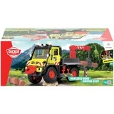 Mettez-vous au travail – avec l’Unimog U530 de Dickie. Ce camion en bois jouet offre un plaisir de jeu varié. Il mesure environ 50 centimètres de long et dispose d’une commande électrique pour la grue et le treuil. Le fonctionnement est effectué par joystick. Ce jouet Unimog est basé sur le grand original dans de nombreux détails: En appuyant sur un bouton, il y a des effets lumineux et sonores à admirer, les portes peuvent être ouvertes et l’essieu pendulaire a une suspension. Sont également inclus les troncs d’arbres à enlever.