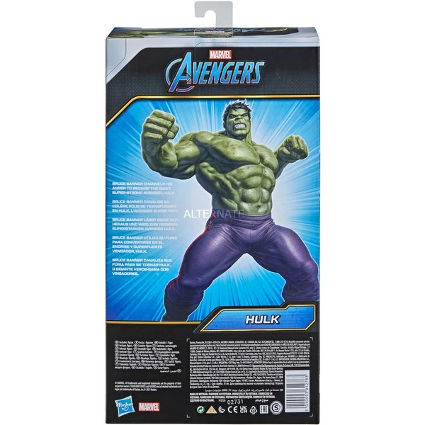 Marvel Avengers E74755L2. Type de produit: Figurine à collectionner, Sur la base de: Bandes dessinées, Thème: Avengers Titan Hero. Avertissement TSD EU: Pas pour les enfants de moins de 36 mois, Petites pièces. Risque d’étouffement. Hauteur: 305 mm, Poids: 351 g, Largeur du colis: 503 mm. Langues des manuels: Multicolore, Type d’emballage: Boîte ouverte, Langues de l’emballage: Multicolore. Largeur du casier principal (externe): 155,6 mm, Longueur du casier principal (externe): 336,6 mm, Hauteur du casier principal (externe): 317,5 mm