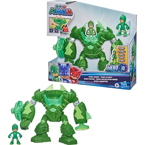 Avec le cool PJ Masks Robo-Gecko, le temps de jeu obtient un coup de pouce de puissance! Le robo-suit prêt au combat de Gecko est livré avec l’ID de héros cool, qui reconnaît les figurines d’action compatibles PJ Masks et y répond avec des lumières ou des sons de héros ou de voyous! Lorsque les enfants placent la figurine de gecko incluse dans le costume, de grands sons de héros et des phrases telles que « Masques PJ à la rescousse! » Cependant, si une figurine malhonnête est insérée (chacune vendue séparément, sous réserve de disponibilité), une alarme retentit dans la combinaison et signale l’intrus! Il y a aussi un bouton d’amulette à l’avant de la combinaison qui active également les lumières et les sons, ainsi que des bras d’action super cool qui déplacent le bouclier super gecko et la ventouse extensible en appuyant simplement sur un bouton. Il y a aussi le Robo-Catboy (chacun vendu séparément, sous réserve de disponibilité) pour encore plus de plaisir de jeu PJ Robo! Les jouets PJ Masks sont d’excellents cadeaux pour les anniversaires ou Noël pour les enfants à partir de 3 ans.