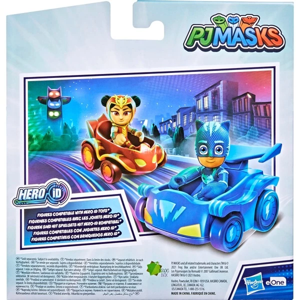 Les véhicules PJ Masks Catboy vs An Yu sont prêts à rouler ! Cet excellent ensemble de véhicules et de figurines est livré avec 2 véhicules Mini PJ Masks et 2 figurines mobiles PJ Masks, afin que les enfants puissent laisser la figurine Catboy et son chat racer et la figurine An Yu et leur véhicule s’affronter dans des courses passionnantes. Les personnages peuvent être placés dans leurs véhicules afin que les enfants d’âge préscolaire puissent recréer leurs scènes préférées de la série ou proposer de nouvelles aventures. Les figurines sont compatibles avec les sets de jeu PJ Masks de Hasbro équipés d’un ID de héros qui reconnaissent les figurines PJ Masks de 7,5 cm de haut et y répondent avec des lumières et des sons (chacun vendu séparément, sous réserve de disponibilité). Cet ensemble PJ Masks est un excellent cadeau pour les garçons et les filles à partir de 3 ans qui sont fans de Catboy, Eulette et Gecko. Les véhicules Catboy vs An Yu offrent beaucoup de plaisir de conduite.