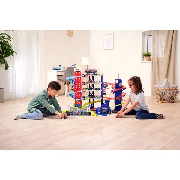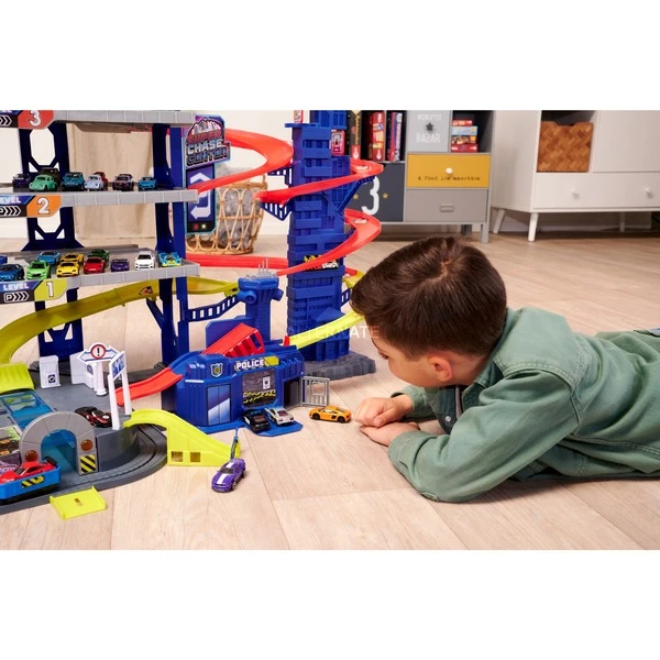 Un criminel doit être arrêté ou la police doit être déployée rapidement? Pas de problème avec le Super Chase Center de haute qualité de majorette. Un must pour les fans de petites voitures à partir de 5 ans et jouer n’est pas seulement amusant, mais en même temps favorise l’imagination. Un total de 57 places de parking et de stationnement sont disponibles, il y a donc encore assez d’espace pour une petite collection de voitures. Pour que le plaisir puisse commencer tout de suite, le Super Chase Center contient 4 voitures jouets moulées sous pression avec roue libre: Audi R8 Coupé Police, Audi R8 Coupé, Ford Mustang GT Police et la Ford Mustang GT. Un train alimenté par batterie avec remorque offre encore plus de plaisir et de variété – de sorte que des transports importants pour la police sont également possibles. De nombreuses fonctionnalités encouragent un jeu étendu. Le poste de police est équipé d’une prison et d’une trappe. Bien sûr, un drone de police ne devrait pas manquer afin de se faire une idée de la situation sur les lieux ou de suivre les poursuites sauvages. Vous pouvez rapidement perdre cela avec la double chaussée incluse, les panneaux d’affichage rotatifs et les différents effets lumineux et sonores.