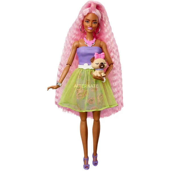 Les poupées Barbie® Extra affichent un look audacieux aux couleurs vives et l’assument à 100 % ! Cette poupée Barbie® Extra vient bouleverser la mode avec son assortiment d’habillages et d’accessoires qui en jettent, pour créer plus de 30 looks adaptés à toutes les occasions. La poupée Barbie® Extra incluse dans le coffret n’a pas froid aux yeux, comme en témoigne son look : chevelure extra-longue rose ondulée avec une demi-queue. Les enfants pourront imaginer encore plus de looks inédits et audacieux grâce aux pièces incluses : une robe, un manteau de fourrure, trois hauts, un pantalon, une jupe, deux paires de chaussures et 10 accessoires ! La figurine de carlin qui l’accompagne ne manque pas non plus de personnalité avec son collier et son nœud sur la tête. Avec ses 11 points d’articulation, cette poupée peut prendre la pose et faire sensation partout où elle va ! La poupée ne tient pas debout toute seule. Les couleurs et les décorations peuvent varier.