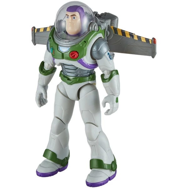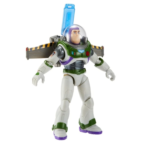 Échoués sur une planète inconnue, Buzz Lightyear et ses camarades doivent se battre contre des plantes hostiles, des insectes géants et la menace ultime Zurg pour terminer leur mission et rentrer chez eux. Cette figurine de décollage de jetpack présente Buzz Lightyear dans sa célèbre combinaison Space Ranger Alpha avec un jetpack. Une fois la pile à combustible remplie d’eau et chargée, Buzz peut enfiler son casque et étendre ses ailes de jetpack sur toute leur largeur de 24 cm. Lorsque Buzz décolle ensuite du sol, des effets lumineux et sonores sont joués et une véritable traînée de condensation sort du jetpack. Avec des lumières et des sons, le plaisir est amplifié. Avec une taille d’environ 30 centimètres, ce jouet authentique de haute qualité avec 12 articulations est super mobile et prêt à recréer encore plus d’action du film.