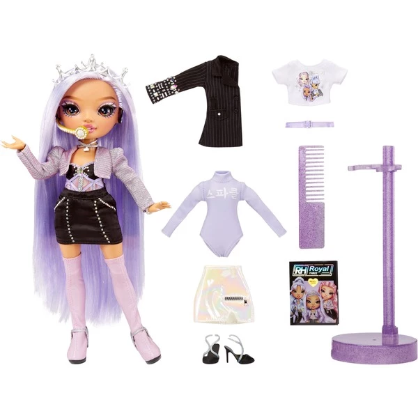 À Rainbow High, cela devient musical: avec un microphone et un support de microphone, les filles de Rainbow High commencent leur carrière musicale. Tiara Song est livré avec de superbes cheveux roses qui peuvent être parfaitement coiffés avec le peigne fermé. De grands accessoires tels qu’une couronne, des boucles d’oreilles ou des chaussures font une tenue à la mode. Un support de poupée est également inclus.