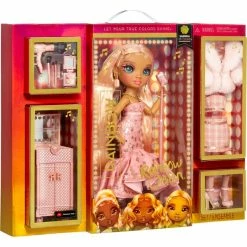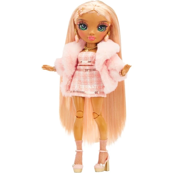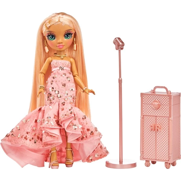 Avec Sabrina St. Cloud, ce sera une comédie musicale à Rainbow High. Cette poupée de mode entièrement mobile ne vient pas seulement avec deux superbes tenues et beaucoup d’excellents accessoires. Il y a aussi un microphone avec support de microphone et un support pour la poupée. La poupée mesure environ 33 centimètres de haut.