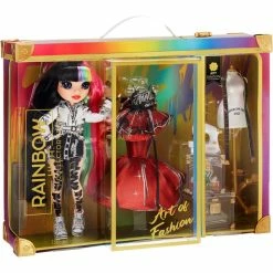 La poupée Rainbow High Collector adore la mode, la dessiner, la porter et la montrer. Elle vit le look arc-en-ciel et porte les couleurs dans ses cheveux. Elle est livrée avec 2 tenues. L’une d’entre elles est très spéciale et de grande qualité: une robe de créateur, faite par elle-même. Grâce à un sac à vêtements, la robe est protégée de la poussière. Pour créer de nouveaux looks, elle a besoin d’accessoires: une mini machine à coudre, une poupée d’habillage et de nombreux accessoires comme des boîtes transparentes au design cool de Rainbow High.