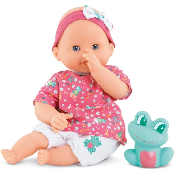 Poupée de bain de corps doux avec animal de bain, yeux endormis, parfum de vanille, robes amovibles, 30cm. Garde le pouce dans la bouche.