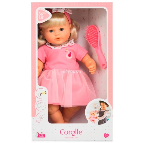 Poupée au corps doux avec cheveux longs, brosse, yeux endormis, peut s’asseoir, parfum de vanille, 36cm.