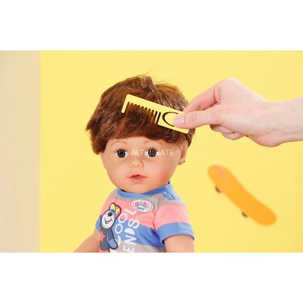 Le Frère n’est pas seulement le meilleur frère du monde, mais aussi l’ami le plus cool que vous puissiez souhaiter. « Cool Friends » est également écrit sur sa chemise rayée. La lausejunge porte des jeans au look usagé et des baskets bleues. N’a-t-il pas l’air super décontracté quand ses cheveux moelleux sortent de sous le bonnet? Il peigne toujours ses cheveux bruns avec son peigne. Le frère est super mobile et peut se tenir seul grâce à ses genoux flexibles. C’est pourquoi il rêve d’une carrière de skateur professionnel. Il emporte toujours sa bouteille de sport avec lui à l’entraînement afin de pouvoir se fortifier avec de l’eau entre les deux. En buvant, il peut pleurer si un tour ne fonctionne pas tout de suite ou s’il est tombé sur le nez. Mais ils ne pleurent que lorsque les filles ne regardent pas. Après la séance d’exercice, il saute dans la baignoire BABY né. Garder votre équilibre vous fait beaucoup transpirer.